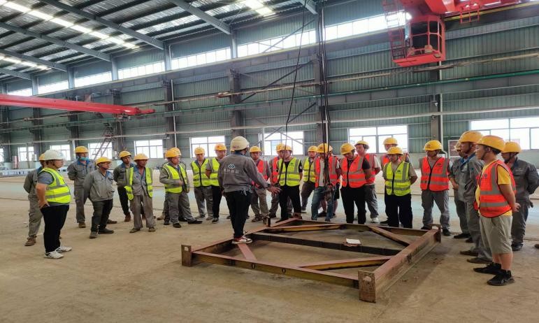 為了提高員工安全生產意識,最大程度降低安全生產風險,提高員工安全操作應知應會能力,增強安全風險意識,創造安全舒適的生產環境。公司生產部和物管部于9月15日至19日在一車間進行桁車實操考核培訓。